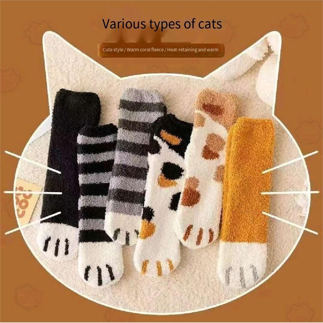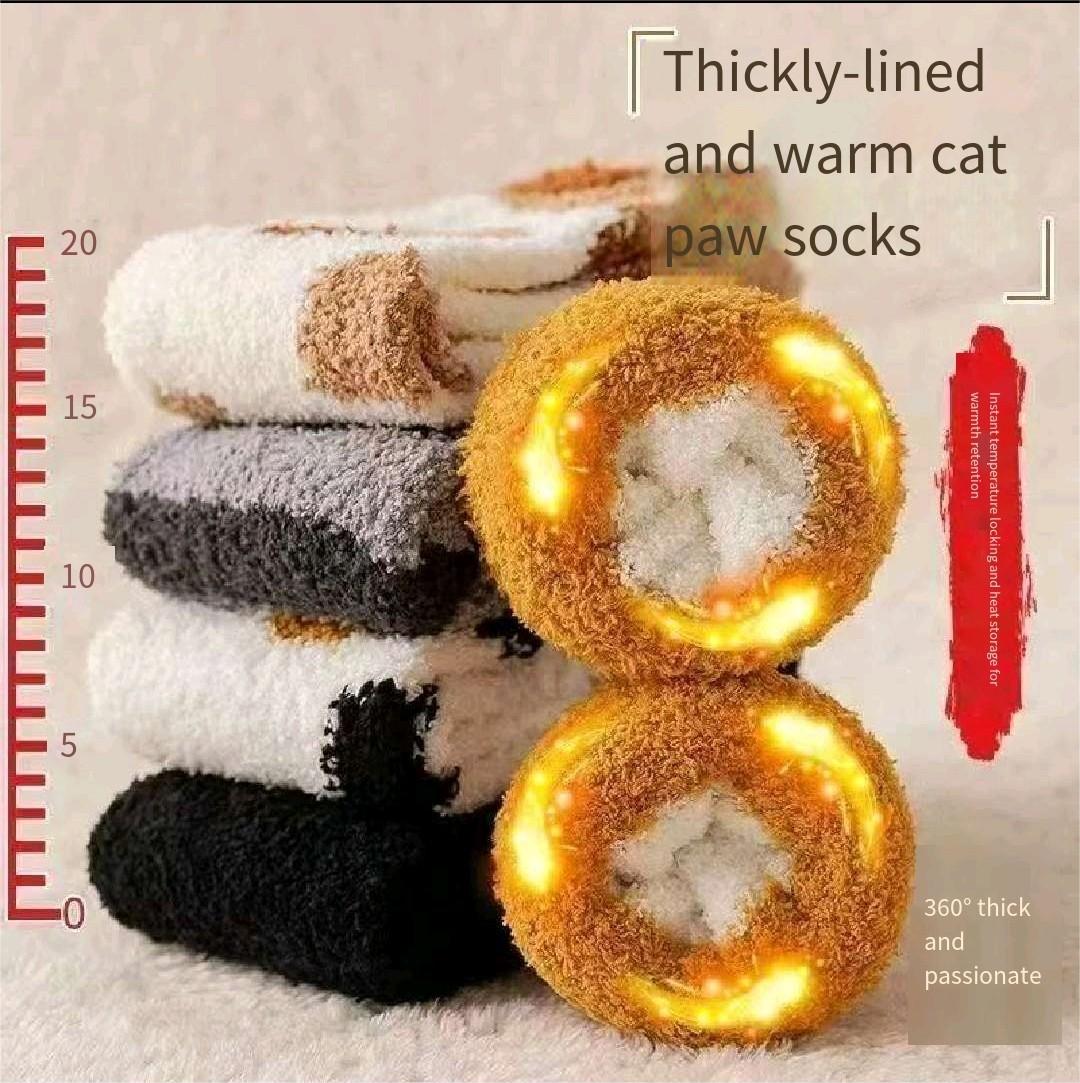Fluffy Socks for Women, Women's winter socks, thickened and fleece-lined, cute cat paw socks, fluffy for winter, maternity sleep and floor socks